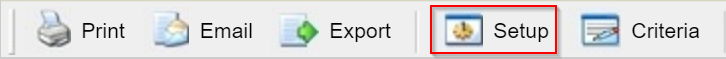 - Once the Report Preview displays, select the Setup button in the toolbar: